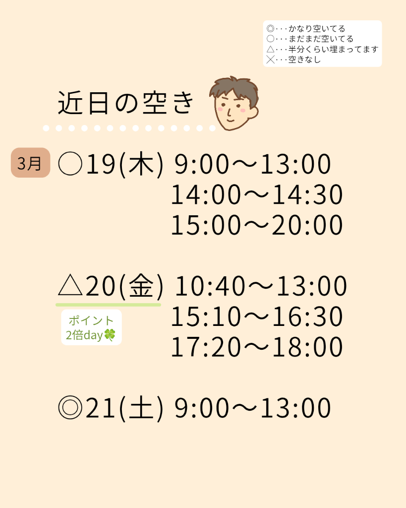 ※通常どおり、18〜20時をご希望の方は「当日18時まで」にご予約をお願いします。