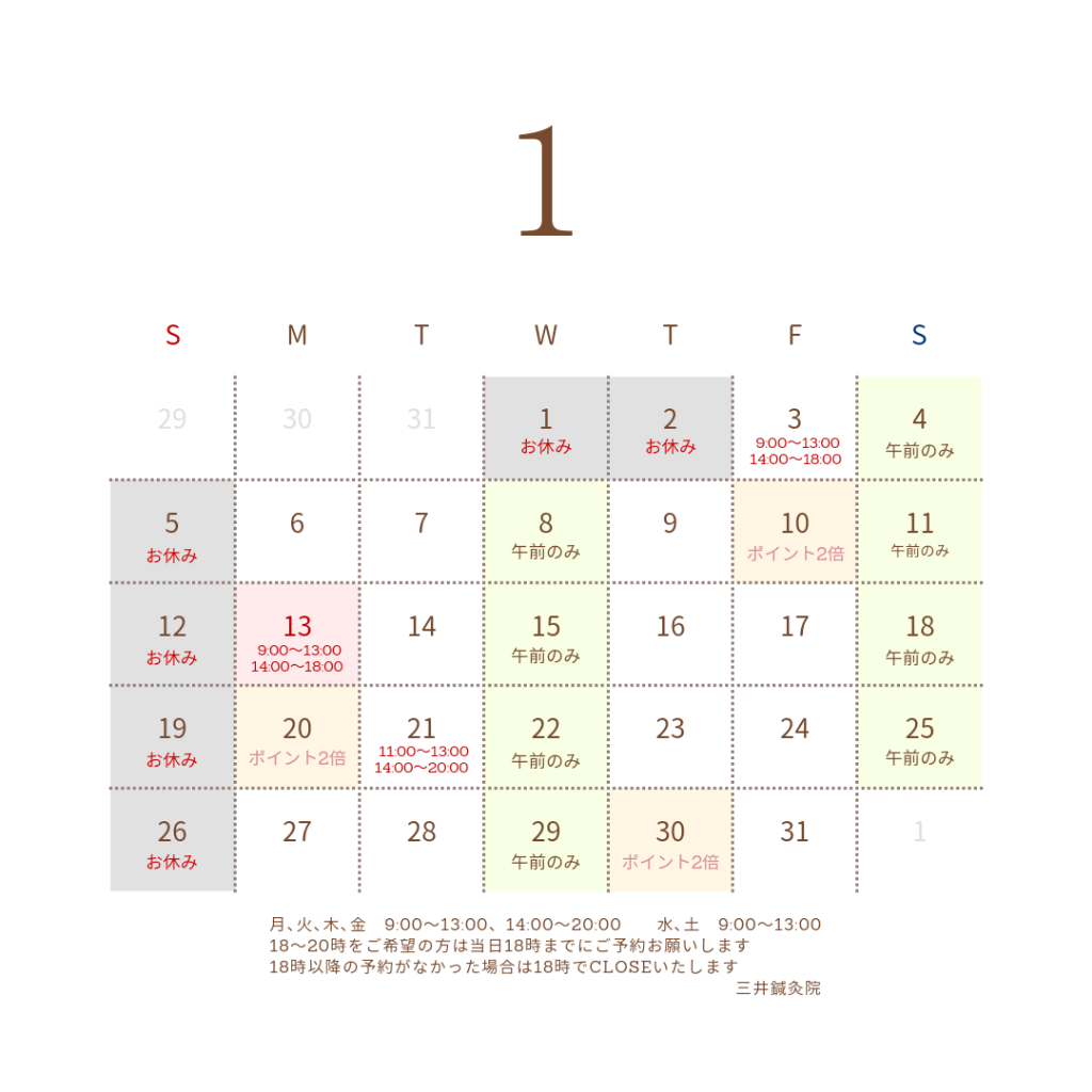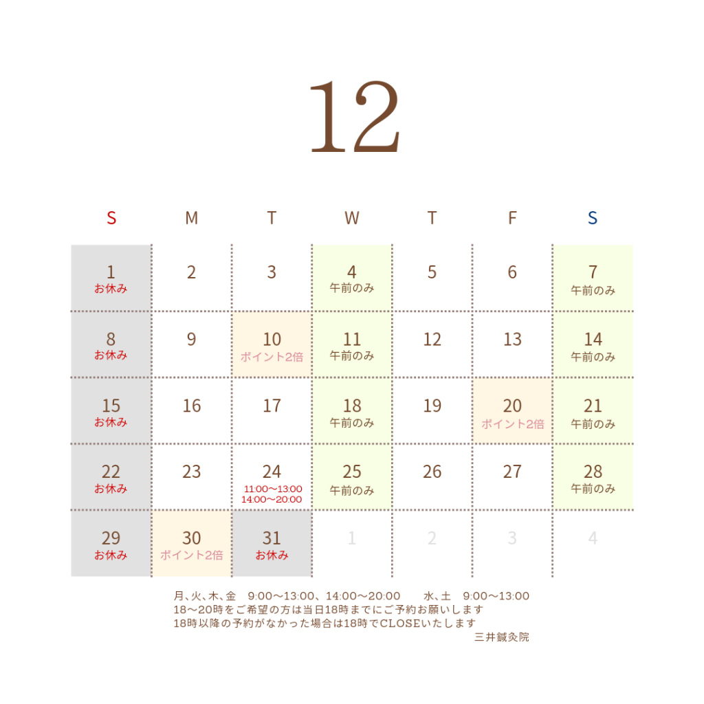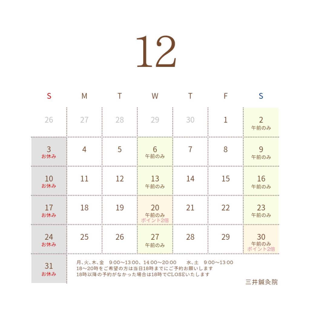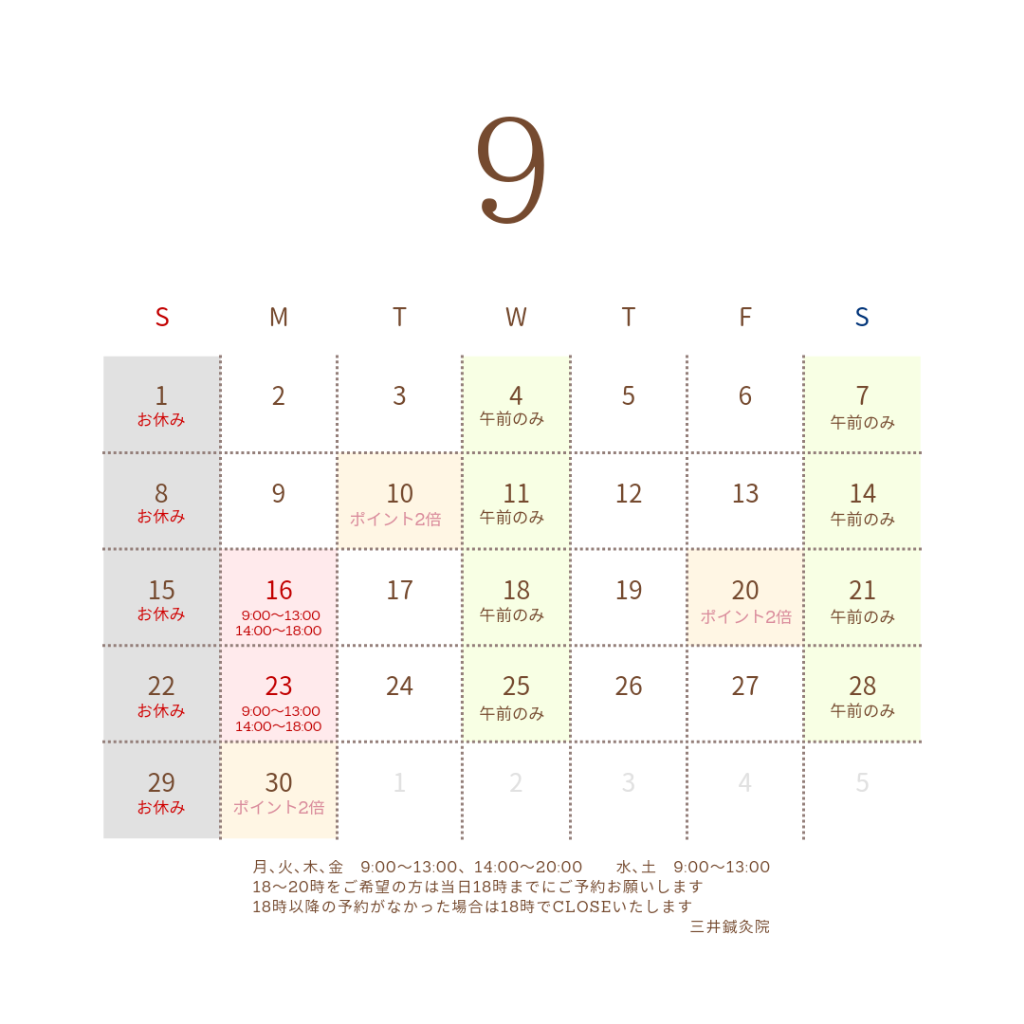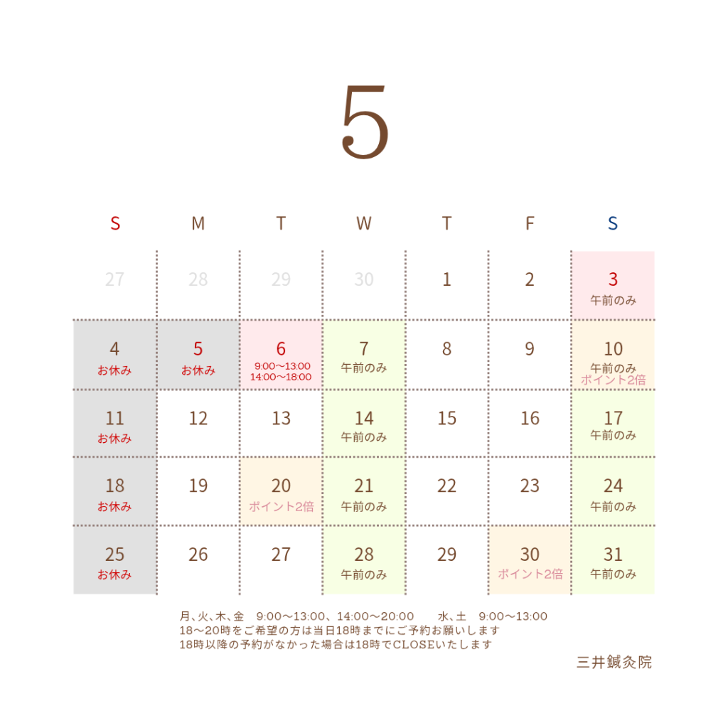 いつも三井鍼灸院をご利用いただき、ありがとうございます。
