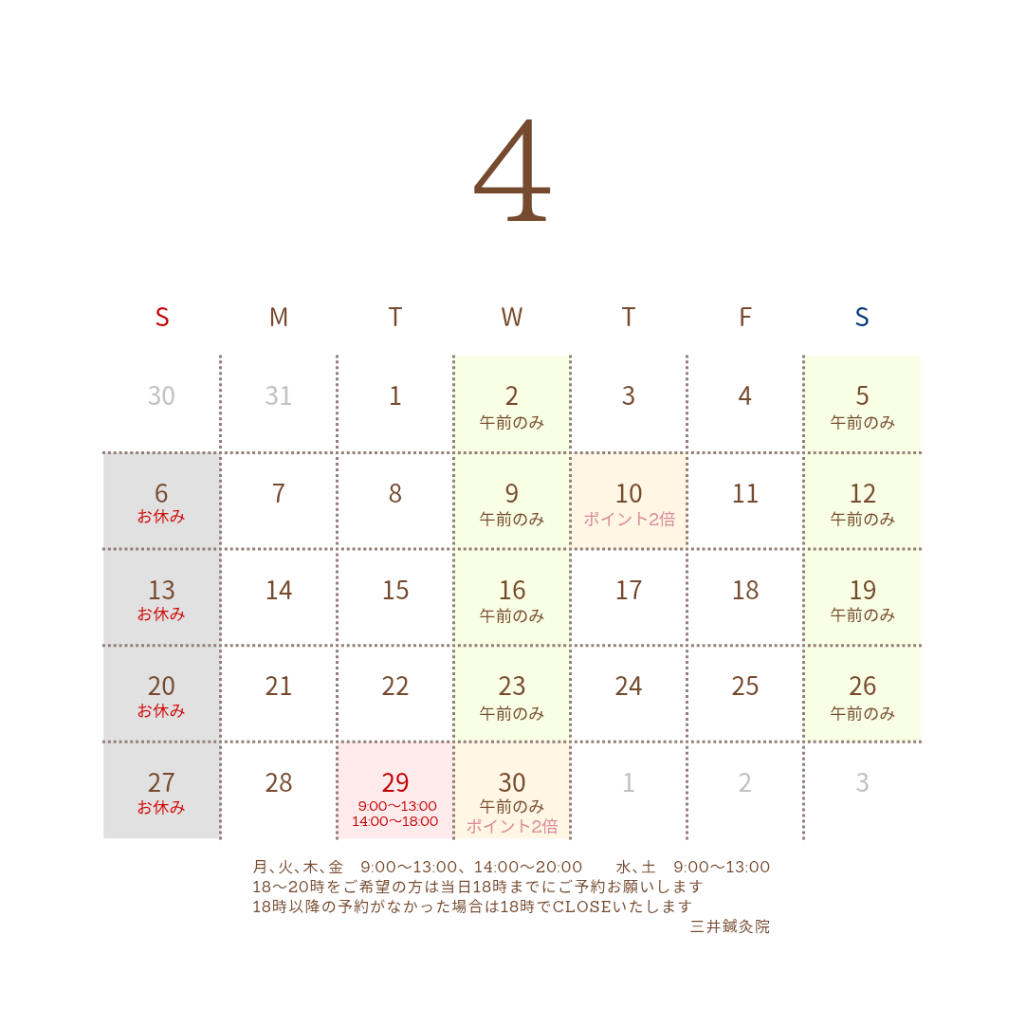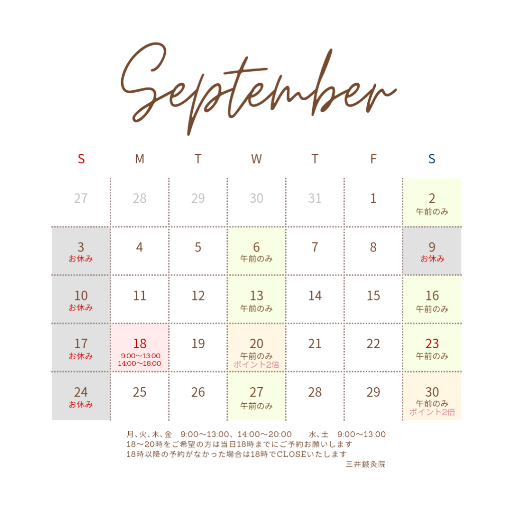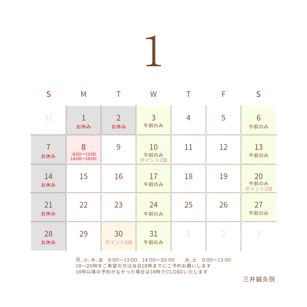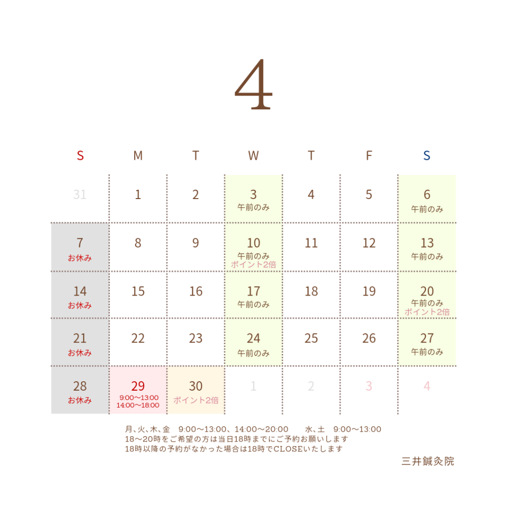 いつも三井鍼灸院をご利用いただき、ありがとうございます。