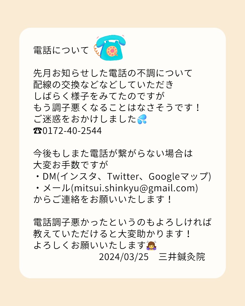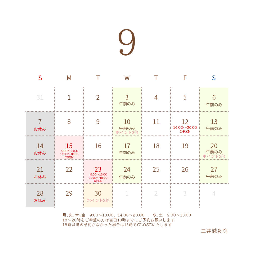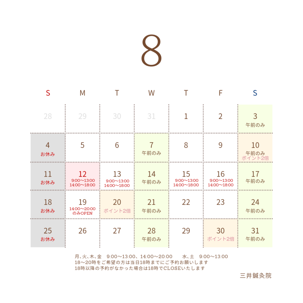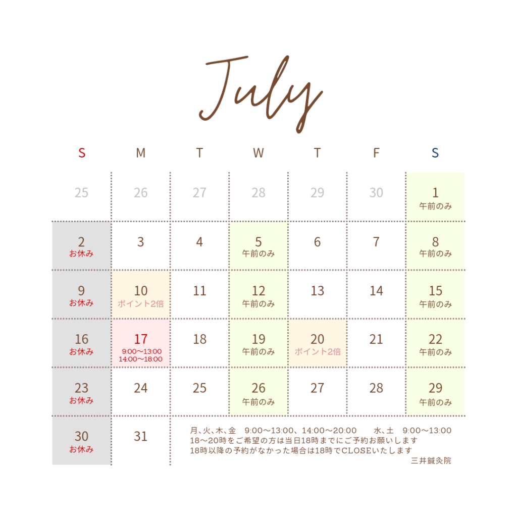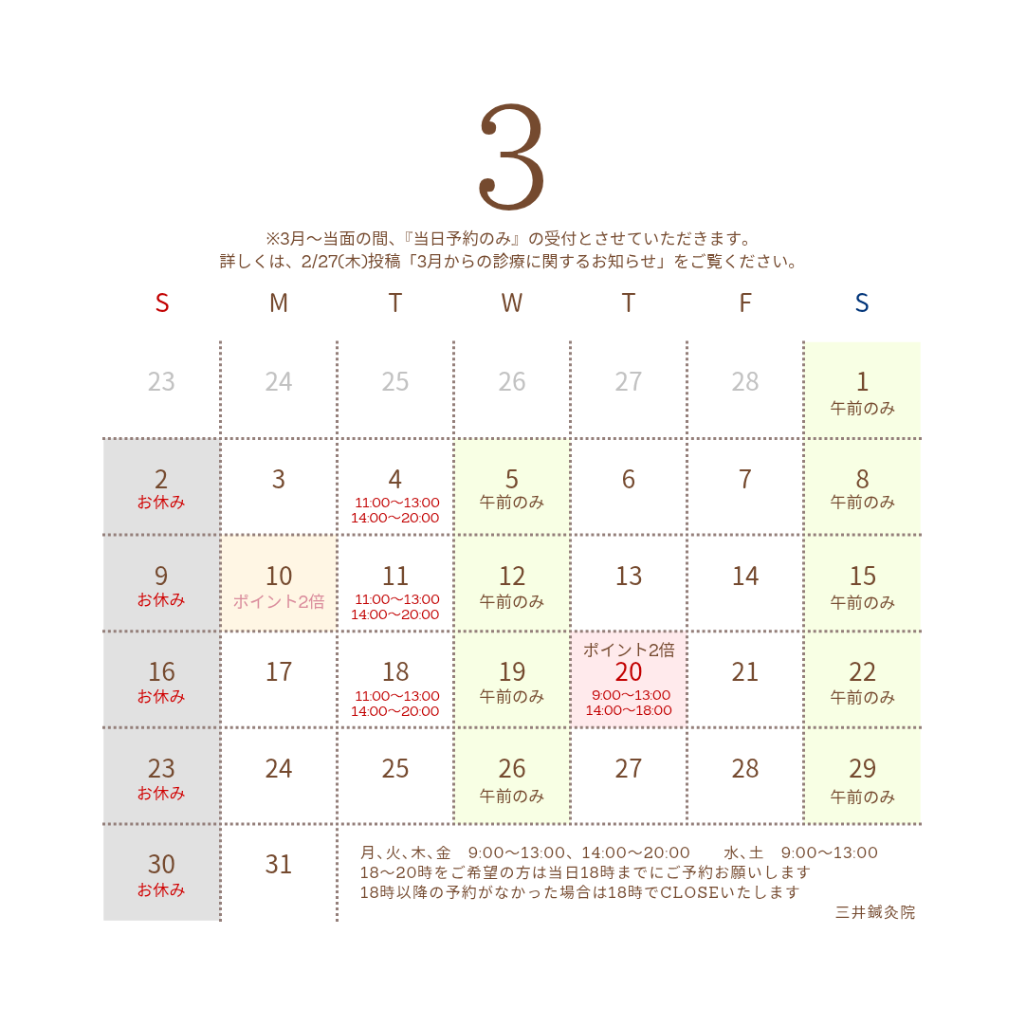いつも三井鍼灸院をご利用いただき、ありがとうございます。
