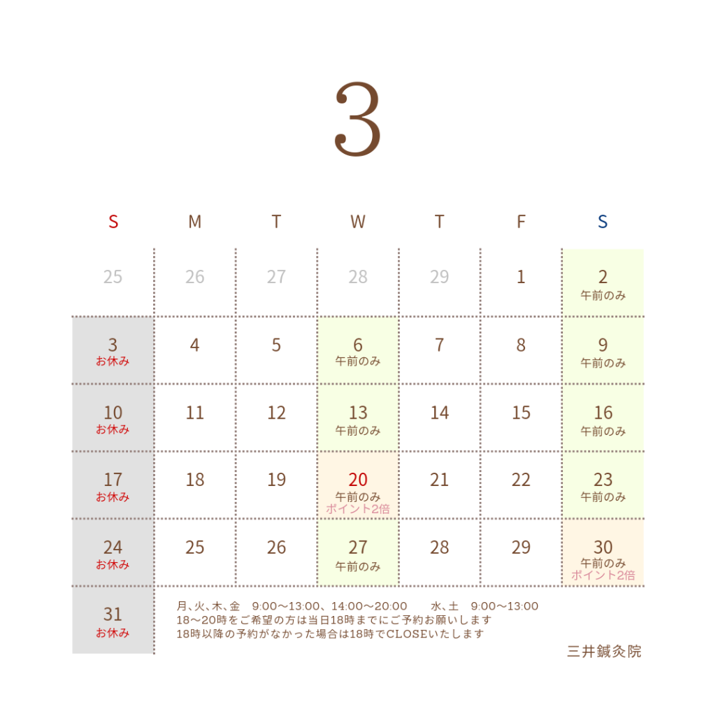 いつも三井鍼灸院をご利用いただきありがとうございます。