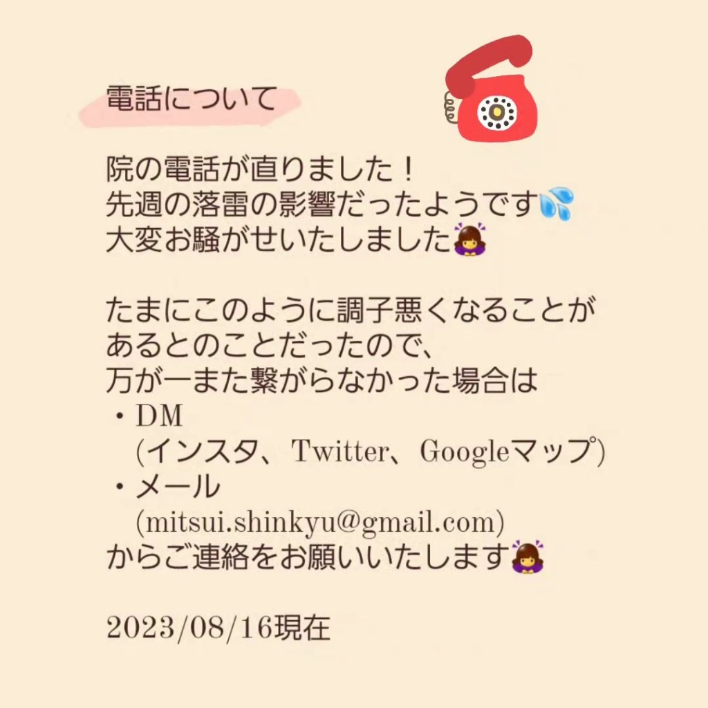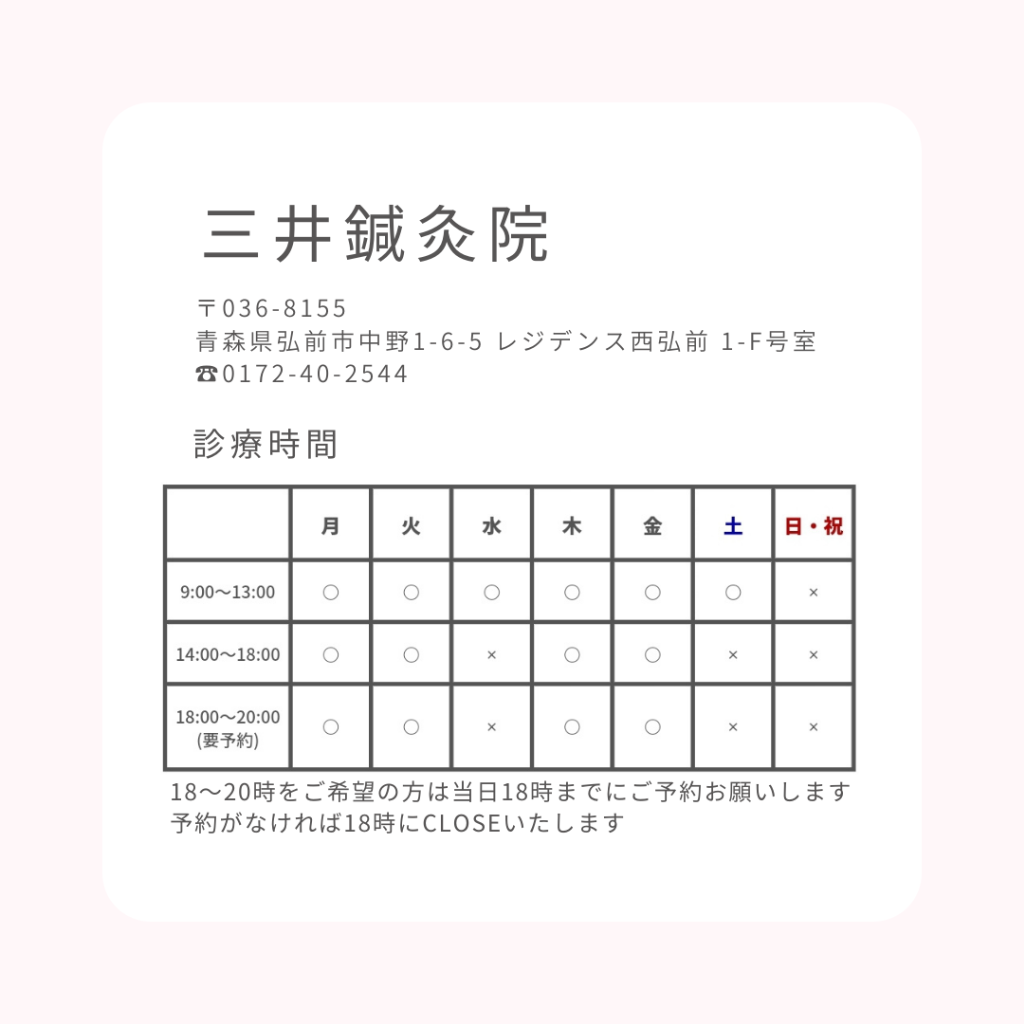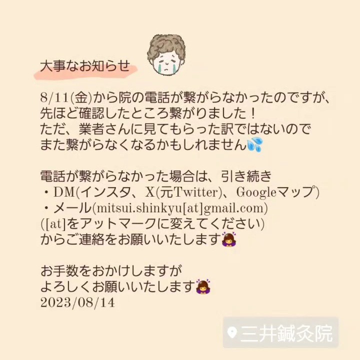 気になる方は三井鍼灸院に直接ご連絡ください。