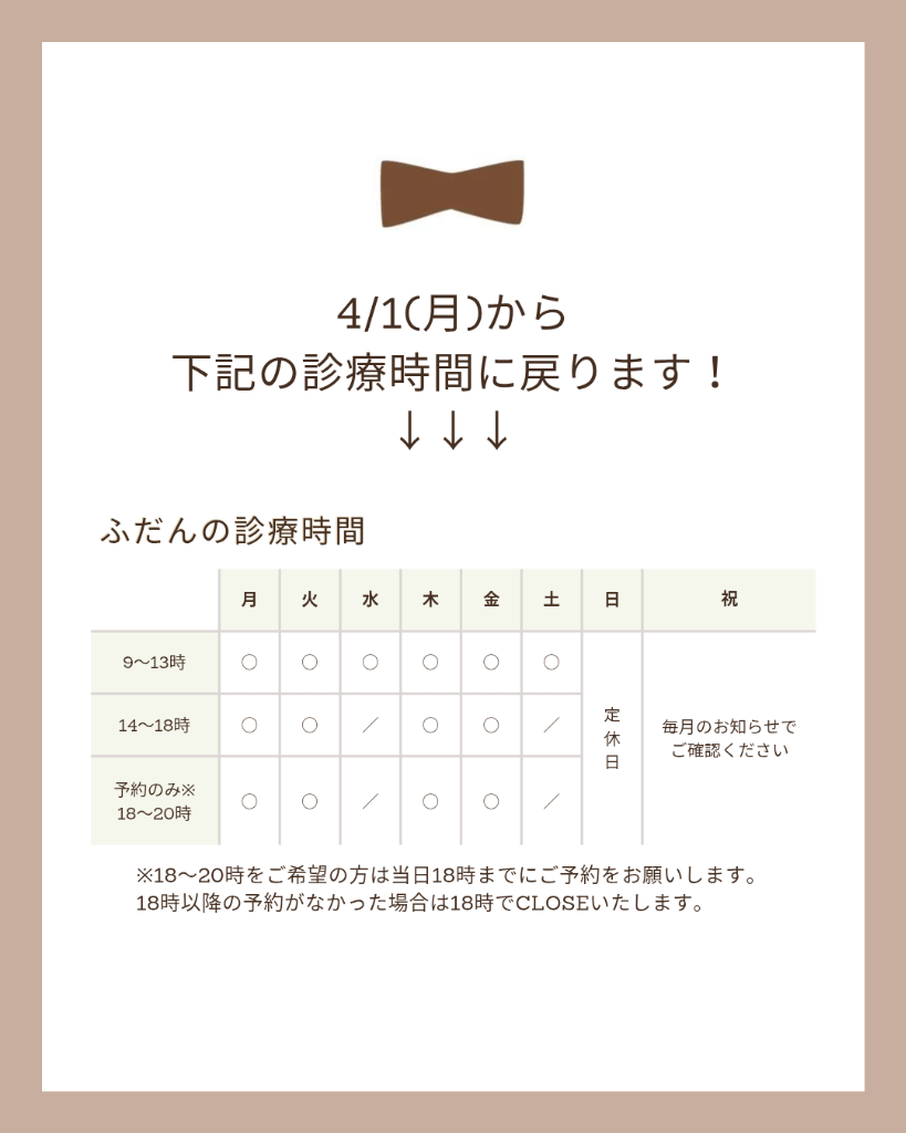 ※通常どおり、18〜20時をご希望の方は「当日18時まで」にご予約をお願いします。