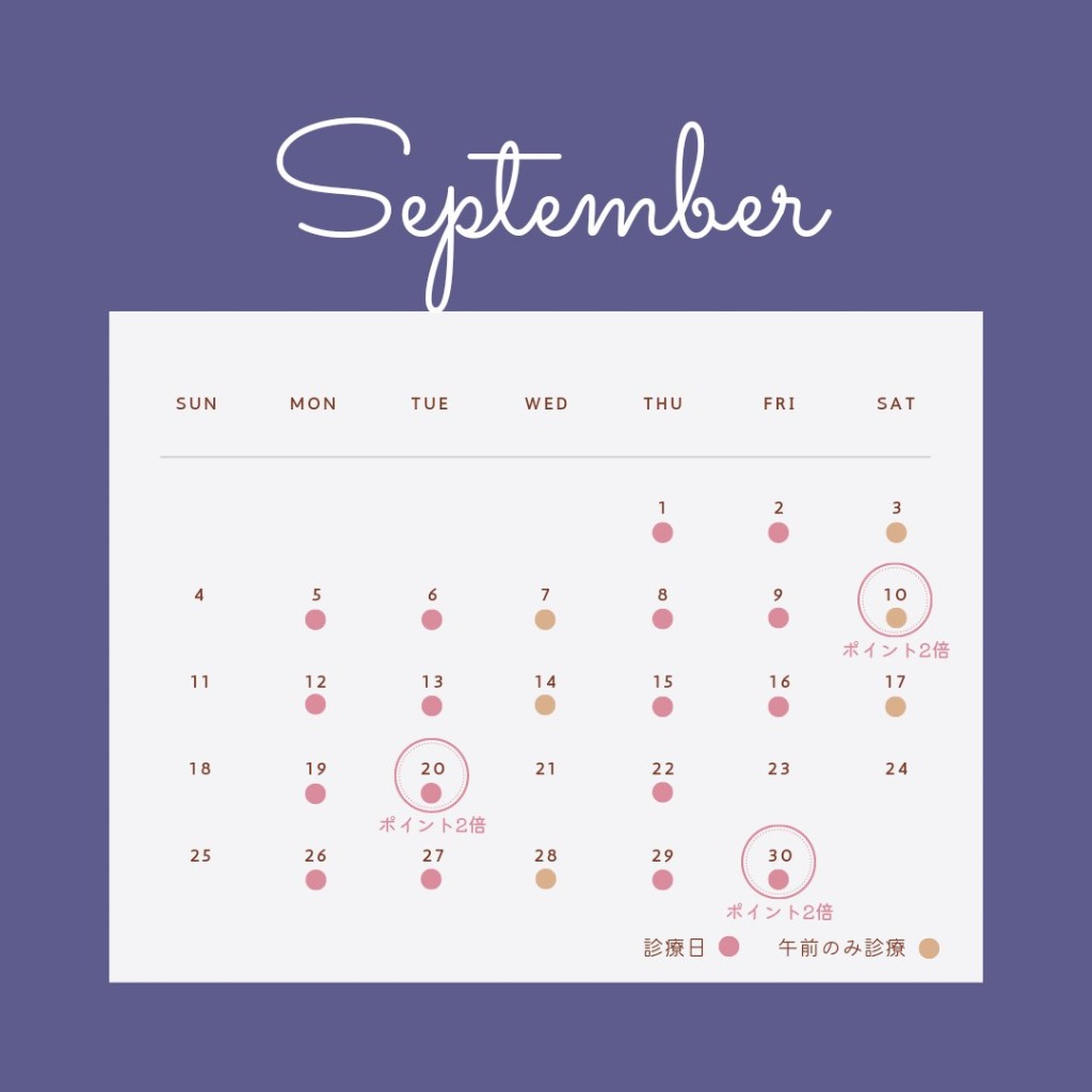 9/12(金)は14:00~20:00でOPENです。9/15(月・祝)、9/23(火・祝)はCLOSEが少し早く、