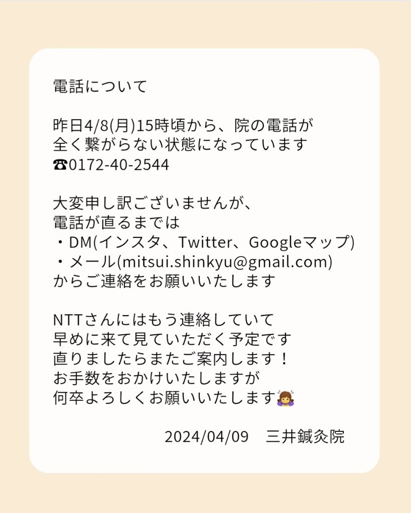 気になる方は、三井鍼灸院に直接お問い合わせ下さい。