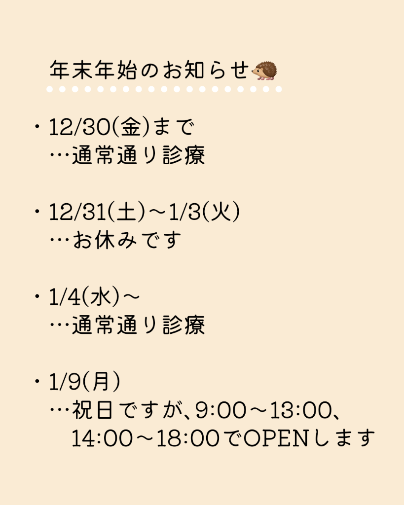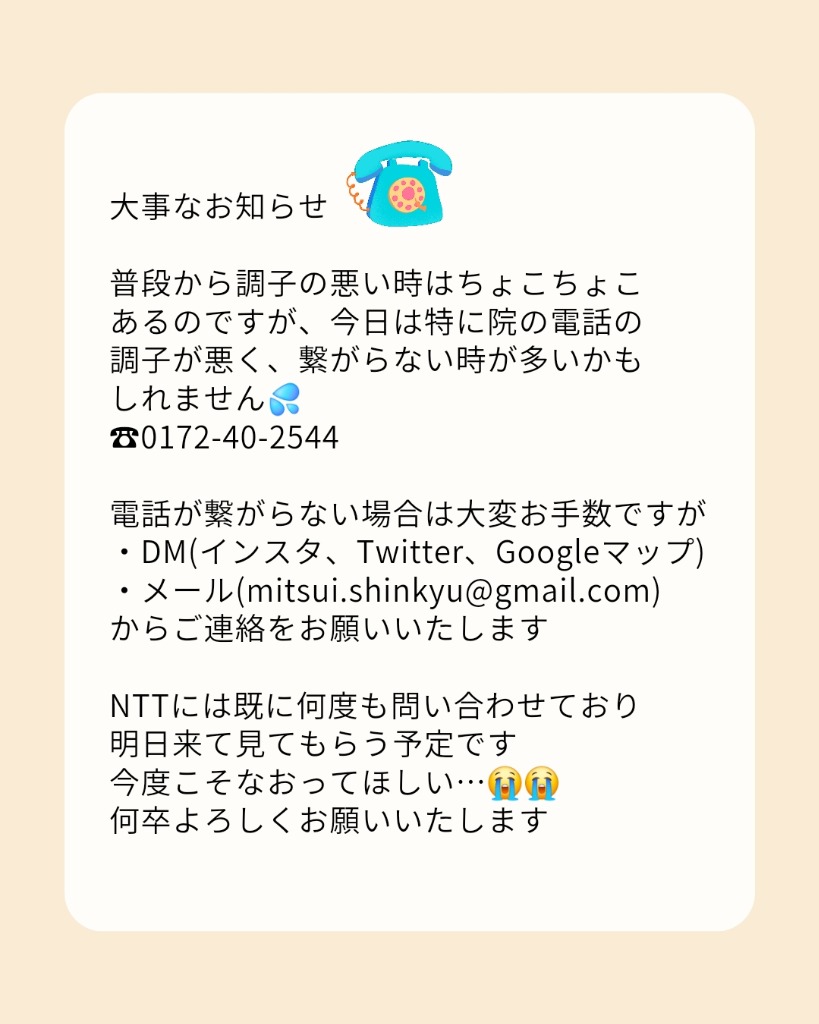 やむを得ず急遽お休みとさせていただく可能性がございます。
